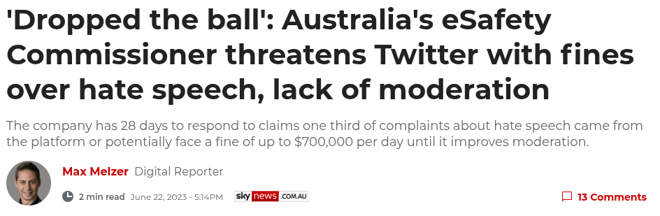 Australia eSafety Commissioner threatens Twitter fines 🇦🇺
