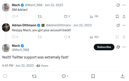 … anyone who has ever dealt with Twitter support in general (let alone post-Elon) knows that “extremely fast” is not their thing.