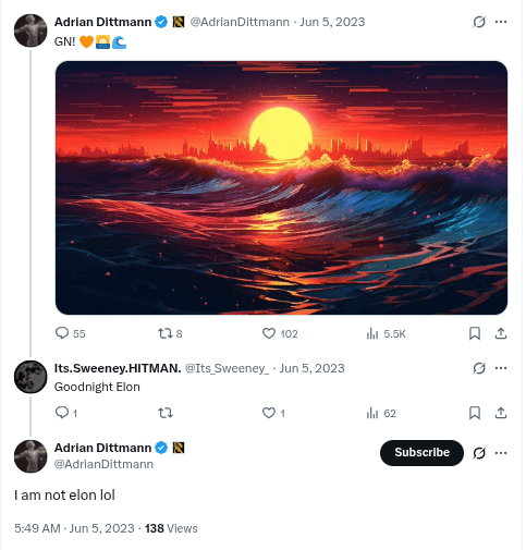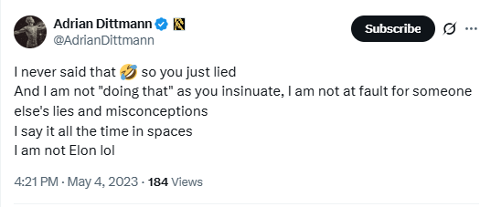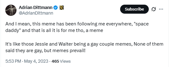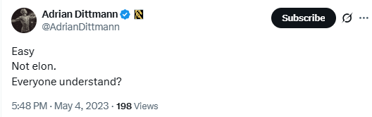 I like to believe that the people who come in hot with their annoyance towards Adrian aren’t people who don’t think he’s Elon Musk, but the people who are sure he is.