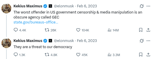 Musk calls “Global Engagement Center” a threat to democracy 🇷🇺