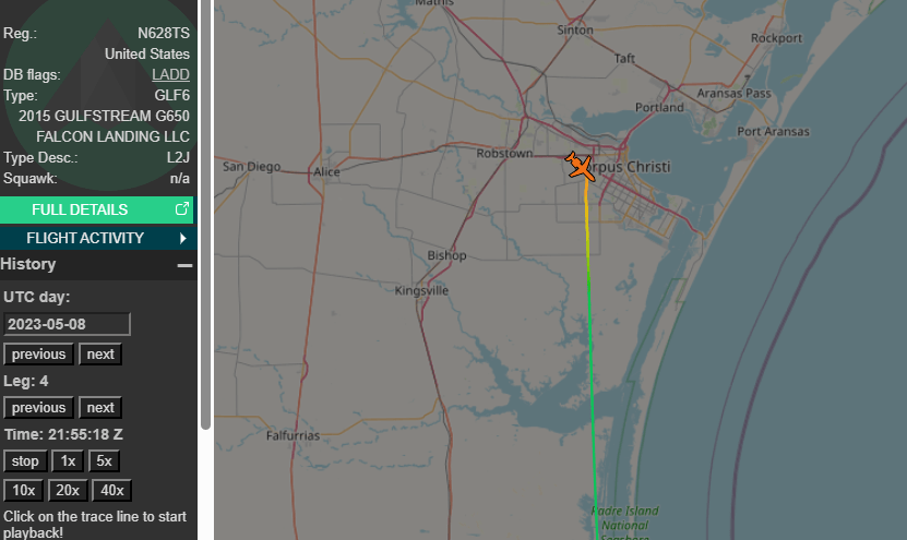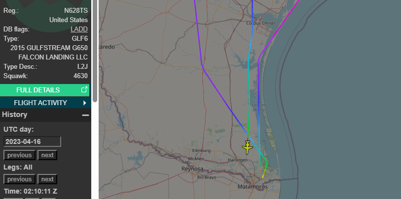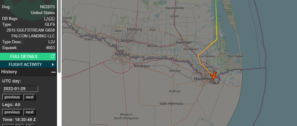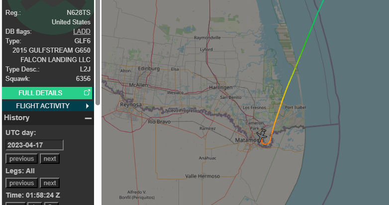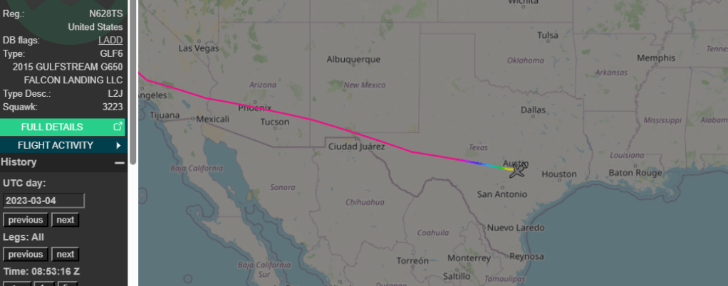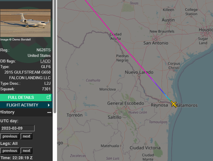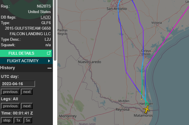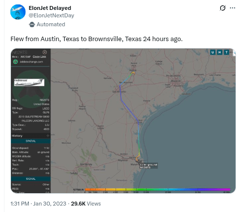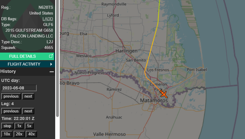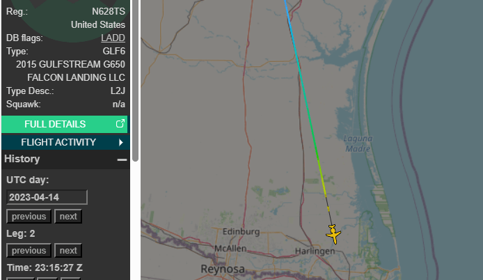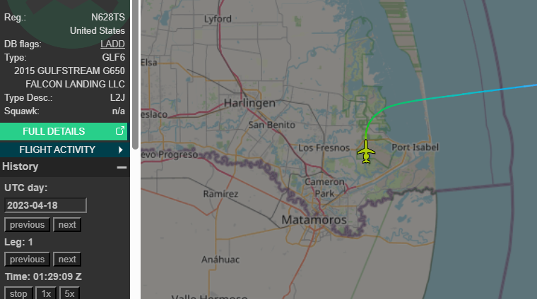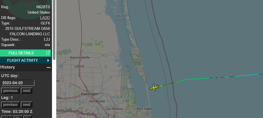 3:20 PM (ET) – Elon’s Jet arrives Brownsville, TX ✈️