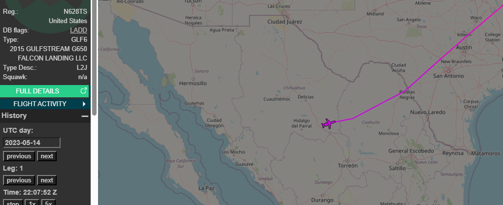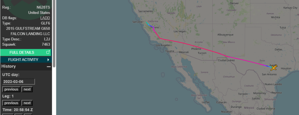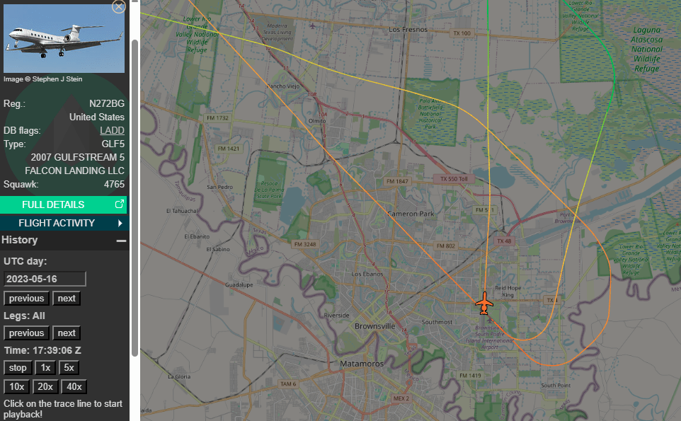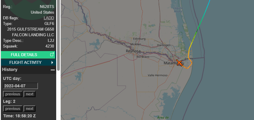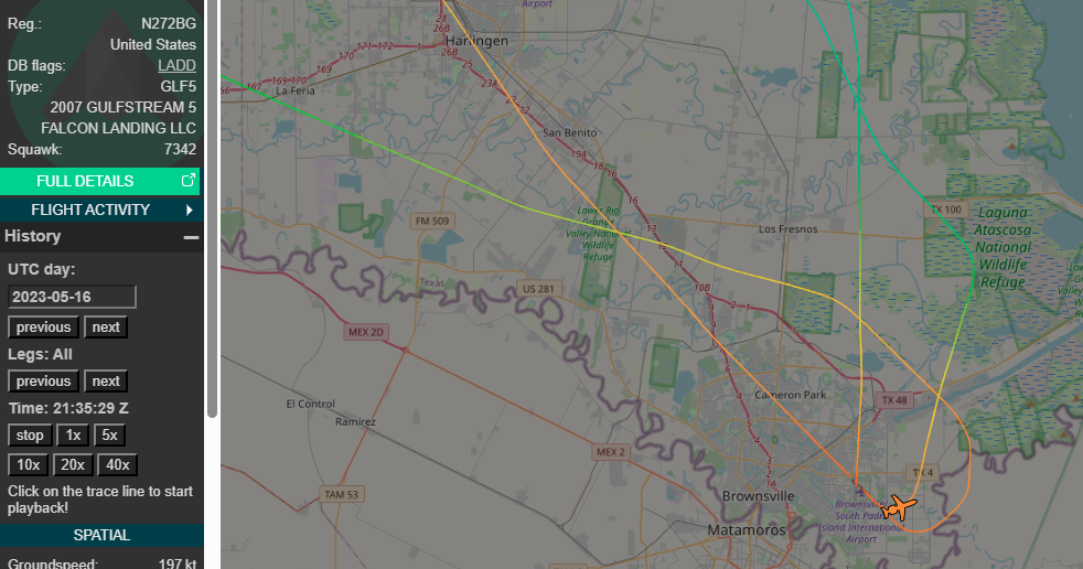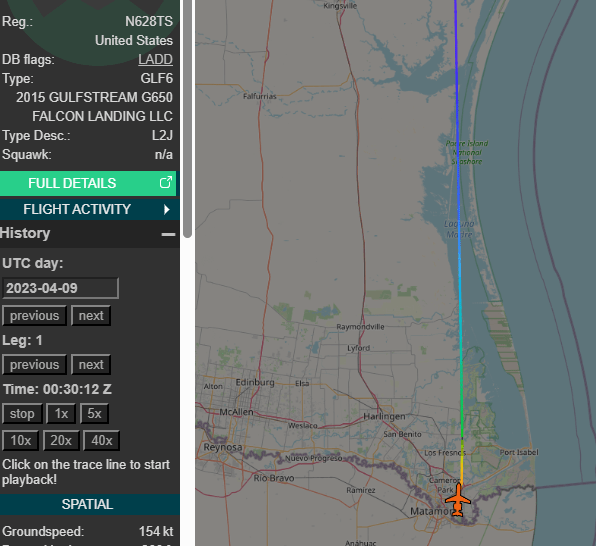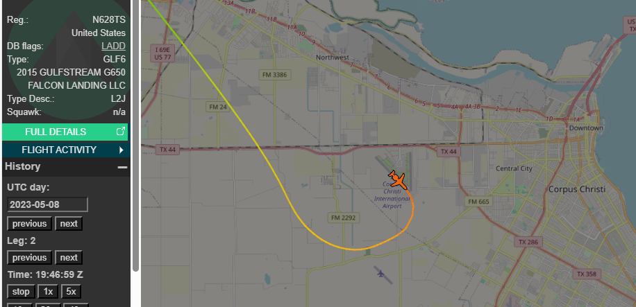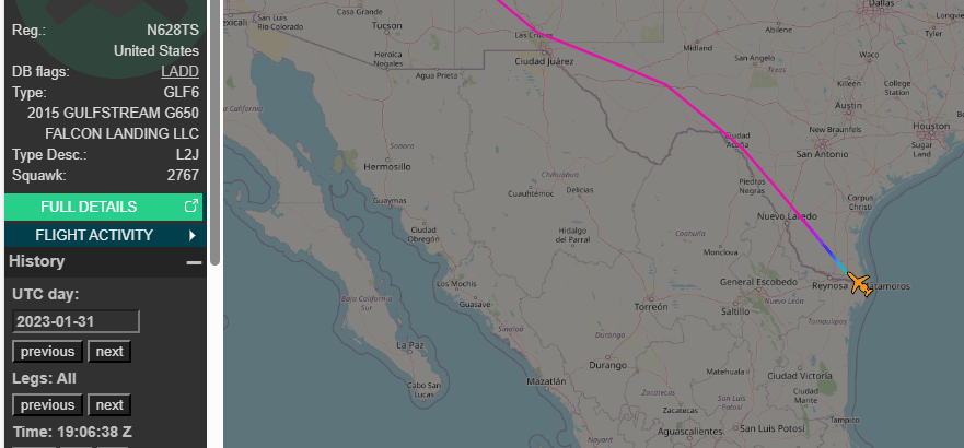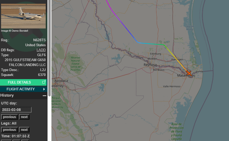3:20 PM (ET) – Elon’s Jet arrives Brownsville, TX ✈️