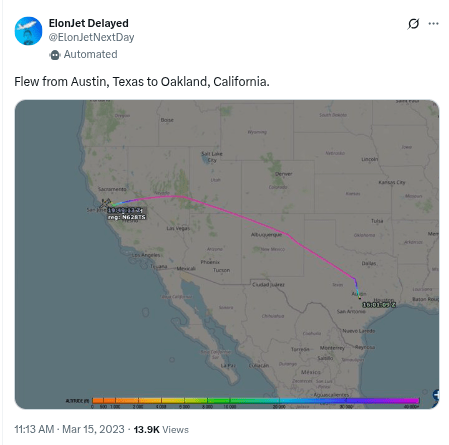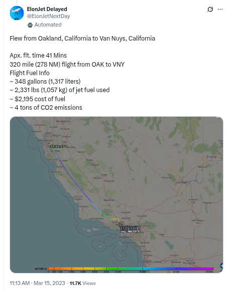 4:00 PM (ET) – Elon’s Jet departs Oakland, CA ✈️