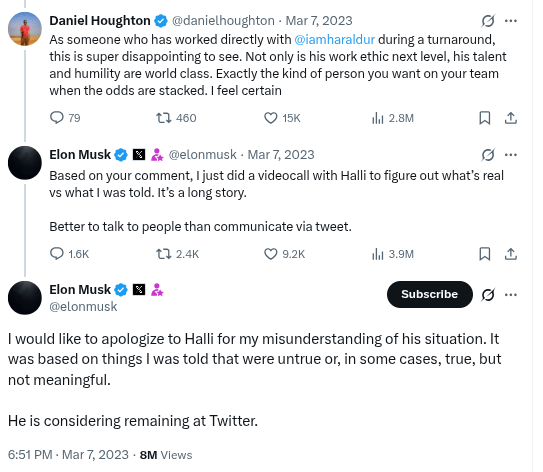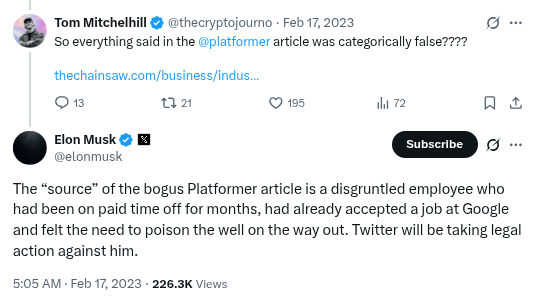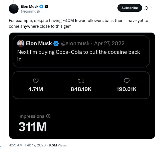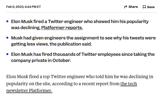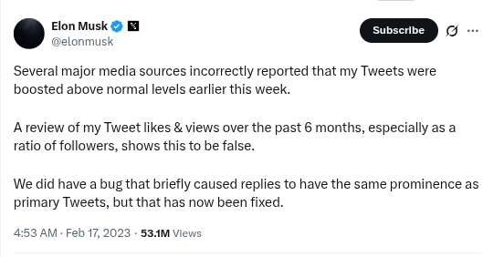 So, what was the urgent engagement problem that required immediate response from the engineering team in the wee hours of Monday morning? According to reporting from Platformer, Elon was unhappy that his tweet about the Super Bowl got less likes than President Joe Biden’s.