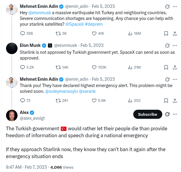 Musk attempts capitalization of earthquake in Turkey 🇹🇷