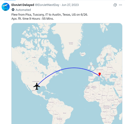 6:29 PM (ET) – Elon’s Jet departs Austin, TX✈️