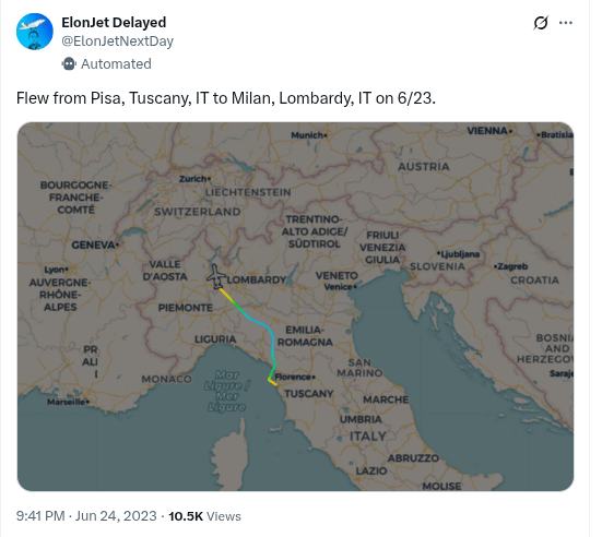 Elon Jet: Pisa, Italy to Milan, Italy 🇮🇹