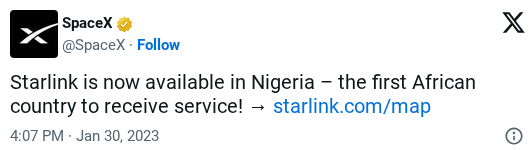 Starlink goes live in Nigeria – first African country 🇳🇬