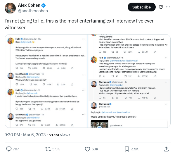 2:30 AM (PT) – Elon’s cousin sends company-wide slack alerting developers to “issue with engagement”, High Urgency