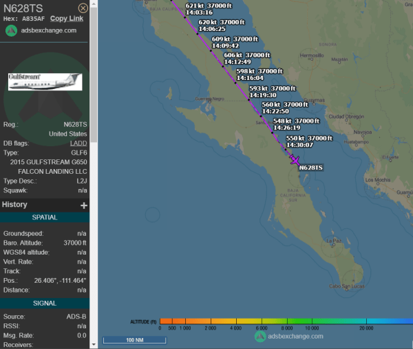 ~3:30 PM (ET) – Elon’s Jet arrives Cabo San Lucas ✈️