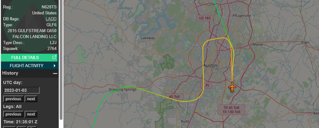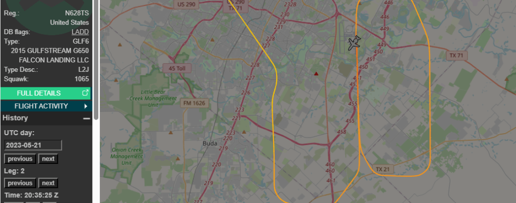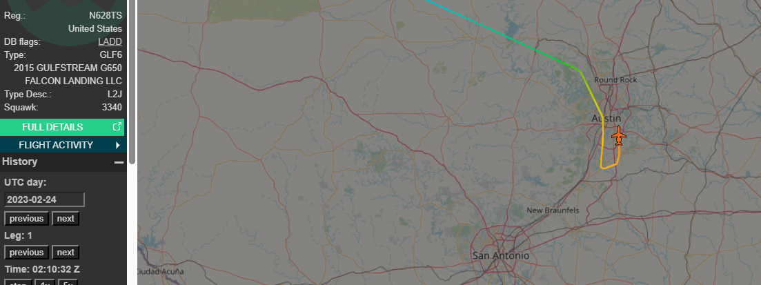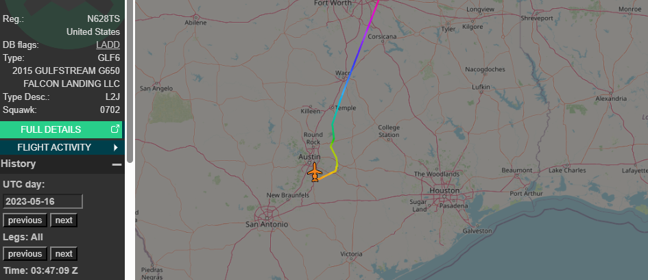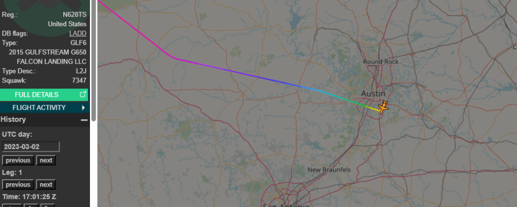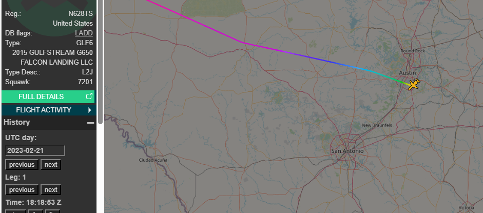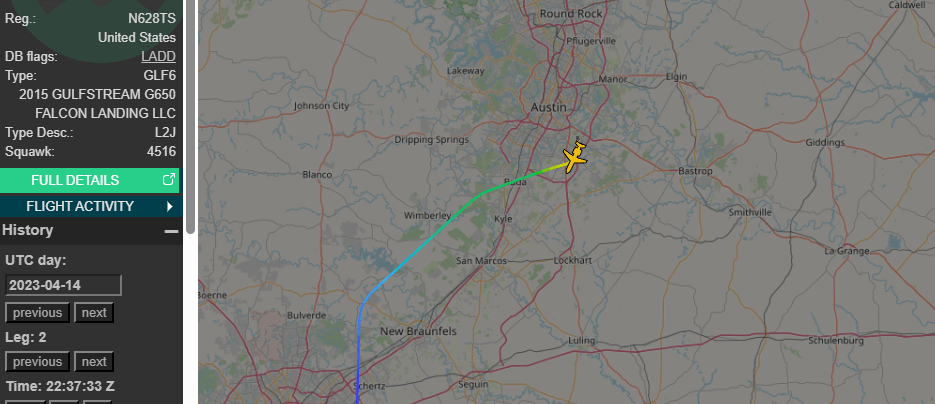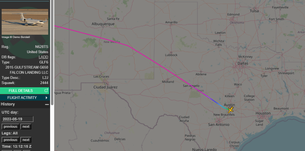 5:35 PM (ET) – Elon’s Jet departs Austin, TX ✈️