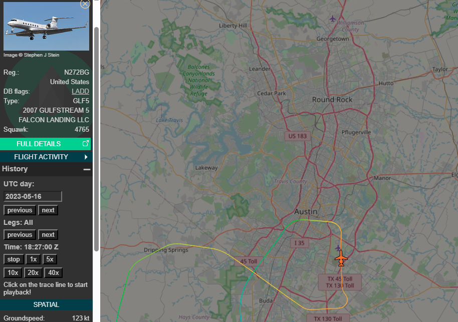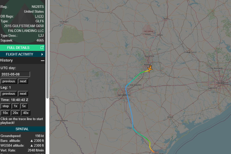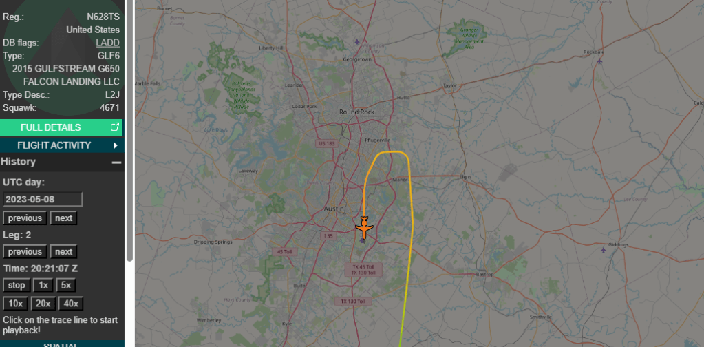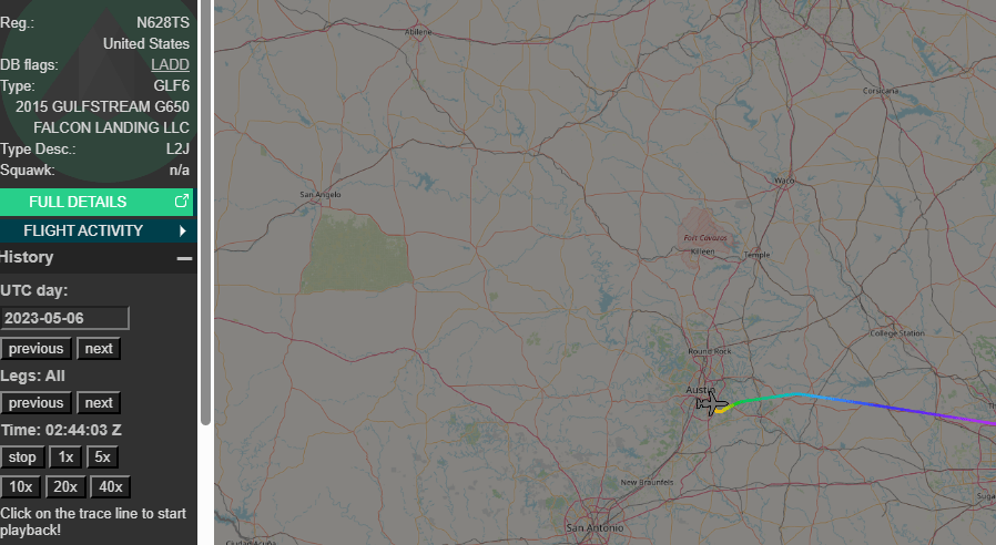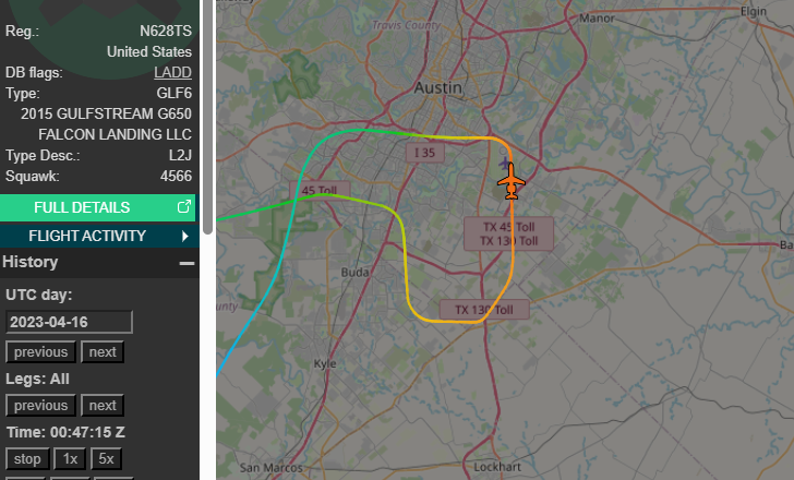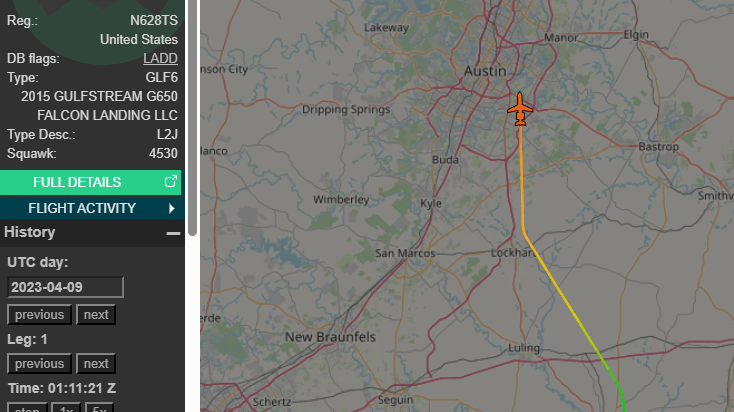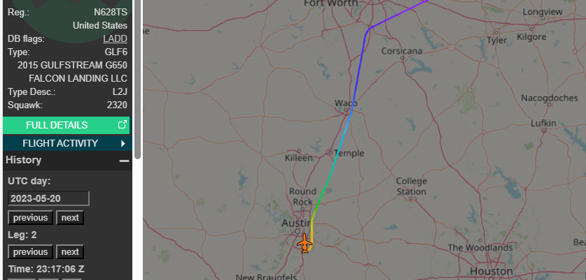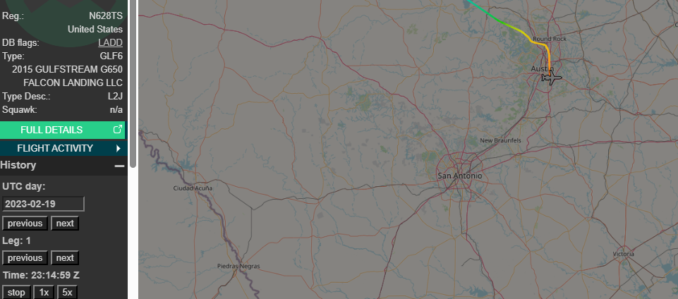 5:35 PM (ET) – Elon’s Jet departs Austin, TX ✈️