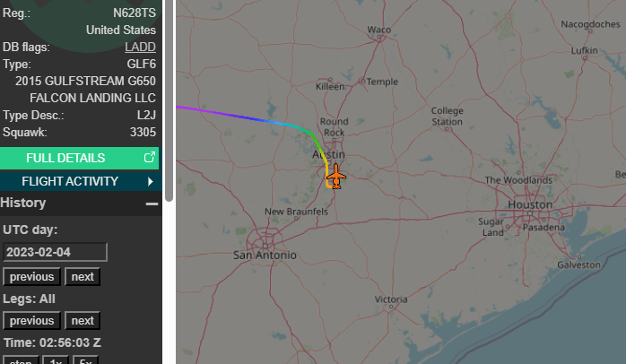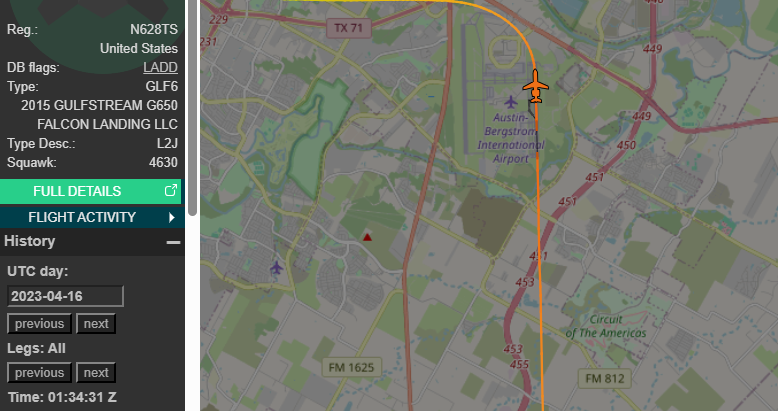 3:35 PM (ET) – Elon’s Jet arrives Austin, TX ✈️