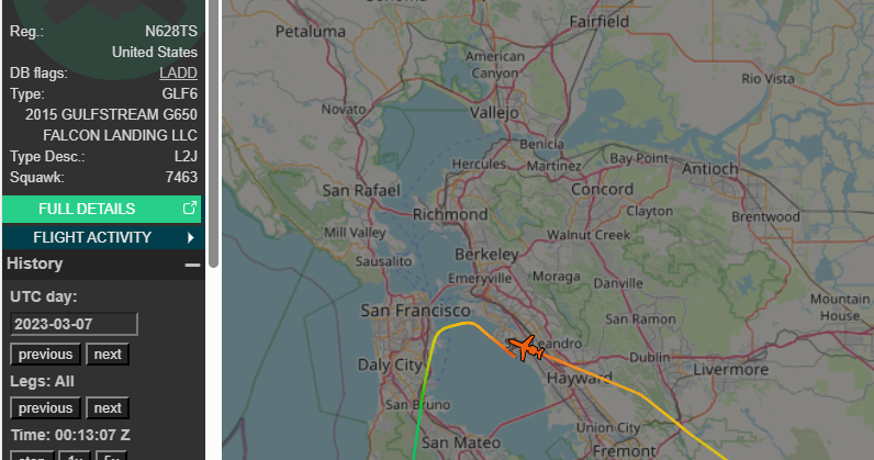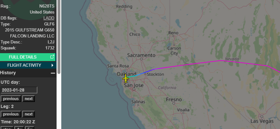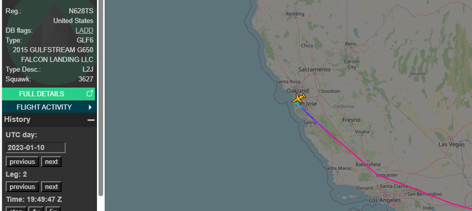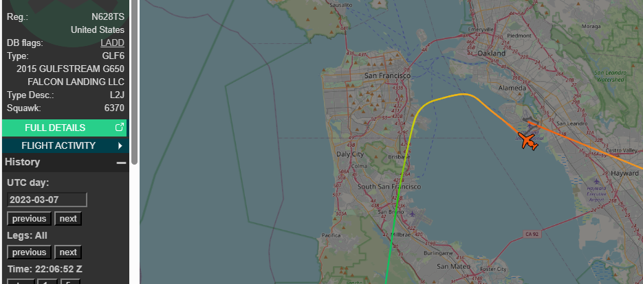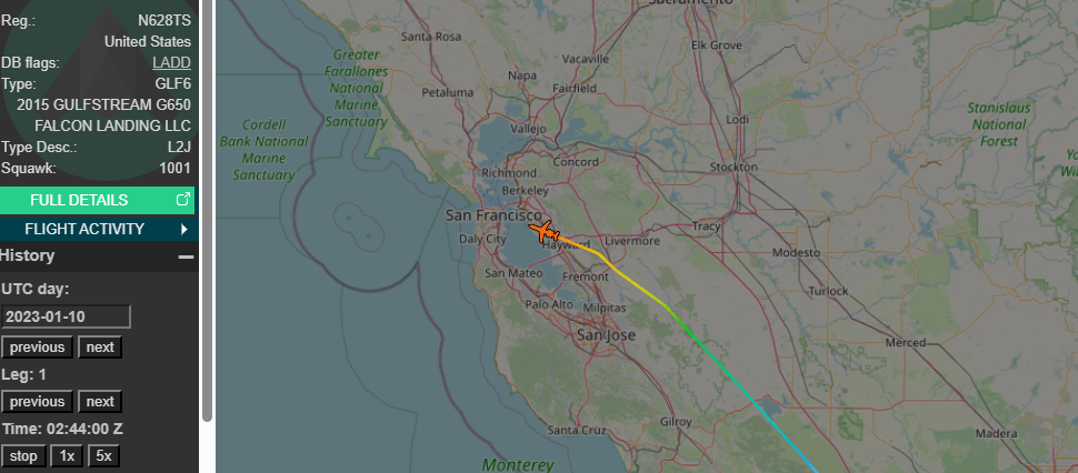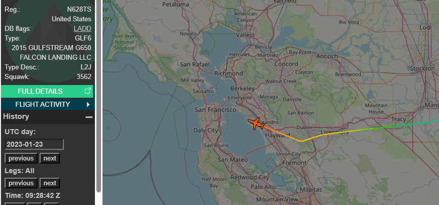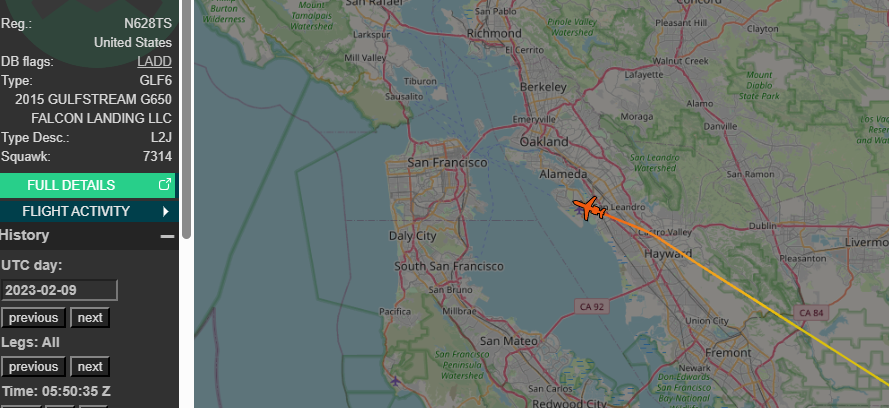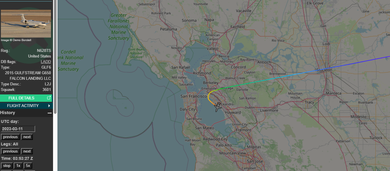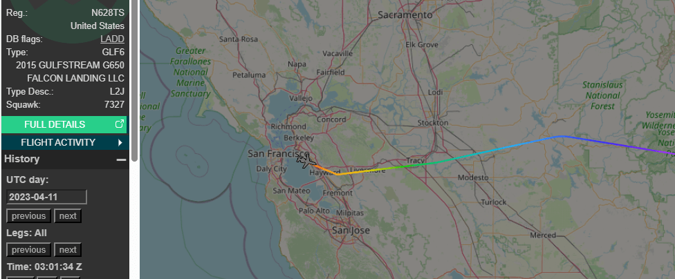 1:50 AM (ET) Elon’s Jet arrives Oakland, CA ✈️