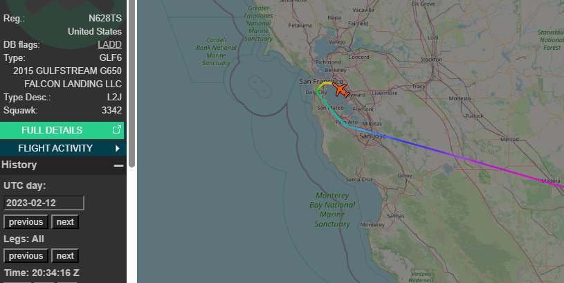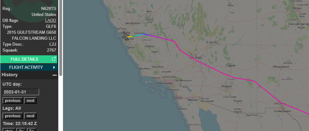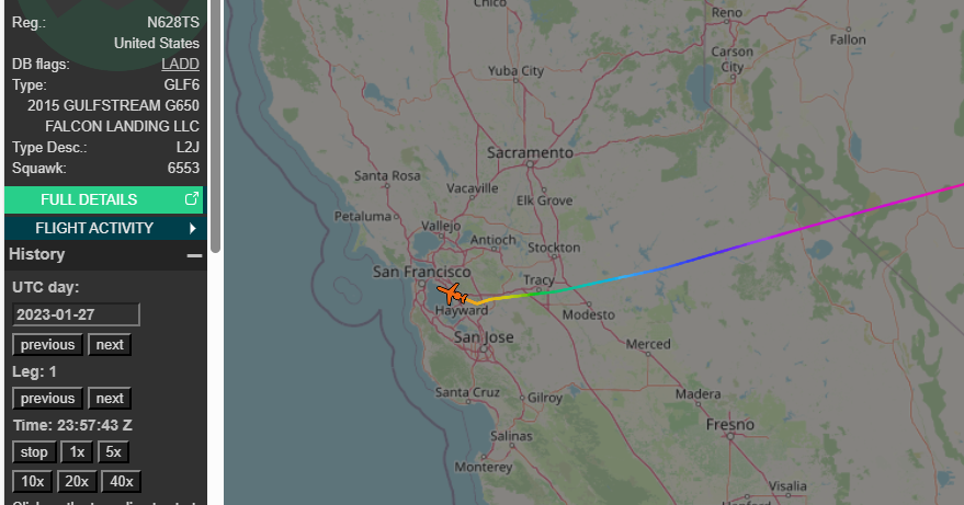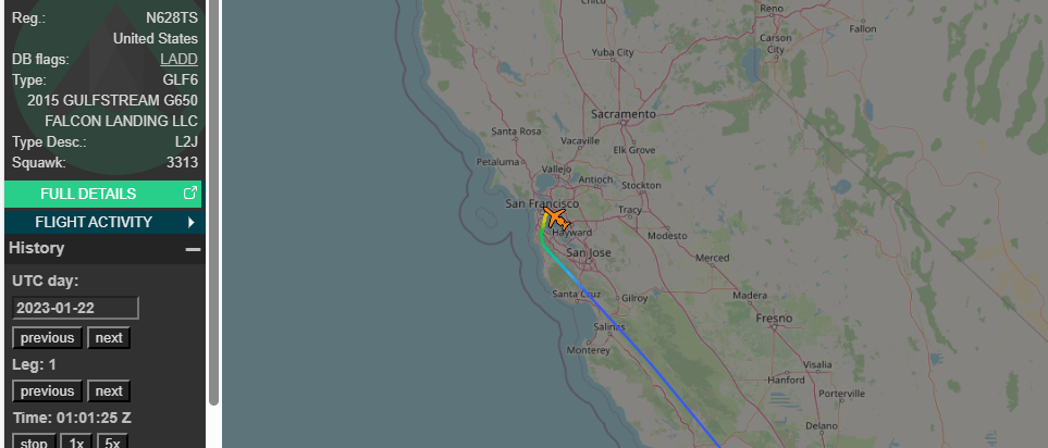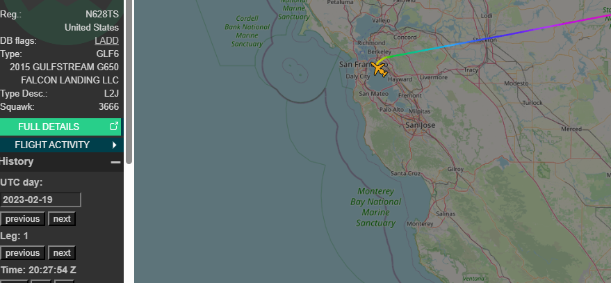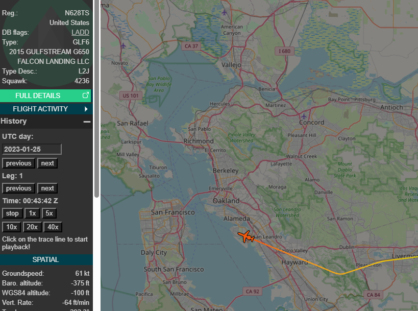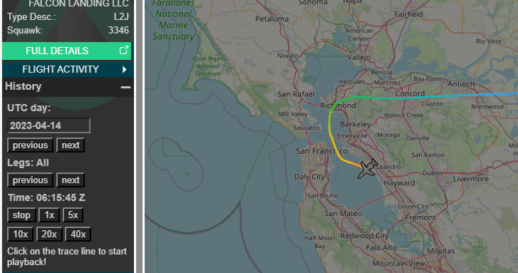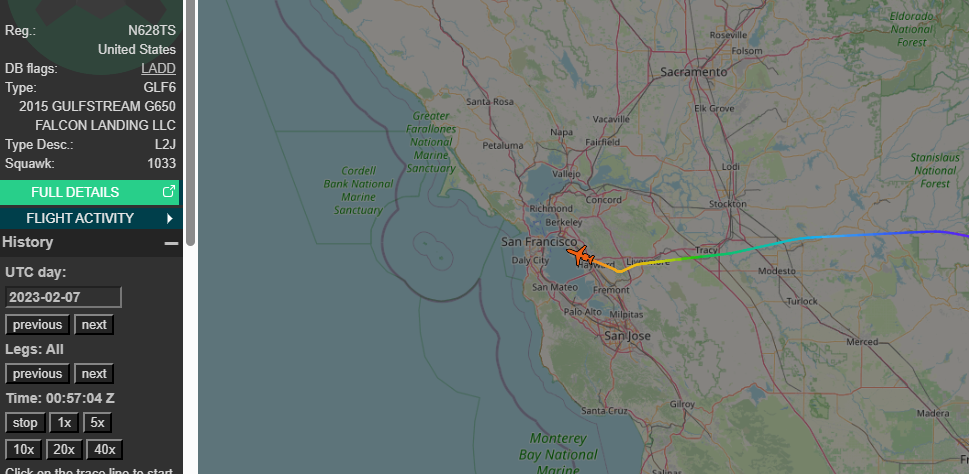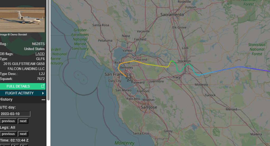 1:50 AM (ET) Elon’s Jet arrives Oakland, CA ✈️