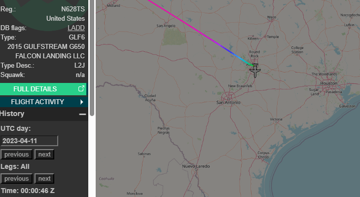 8:12 AM (ET) – Elon’s Jet departs Austin, TX ✈️