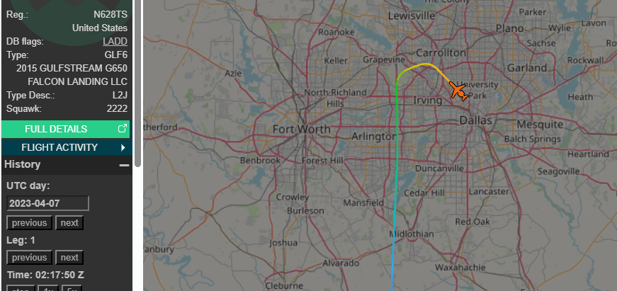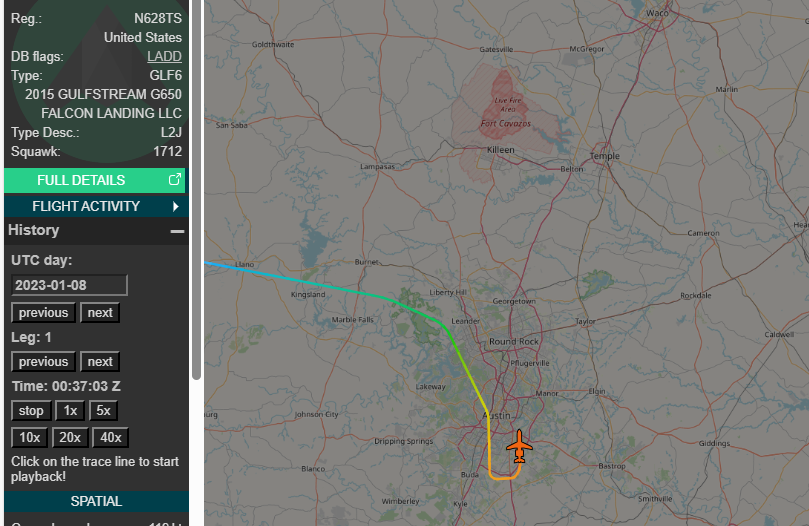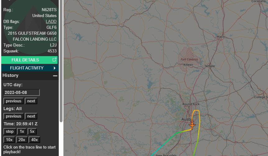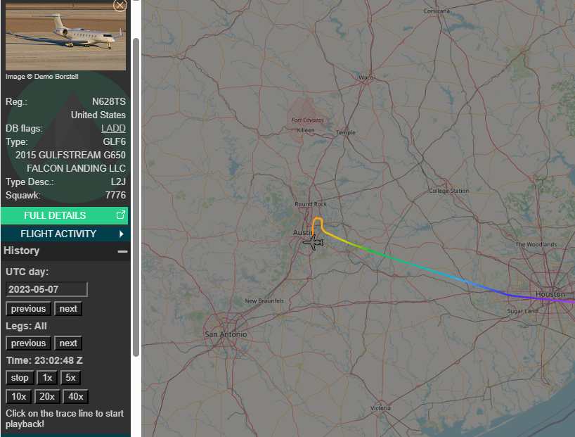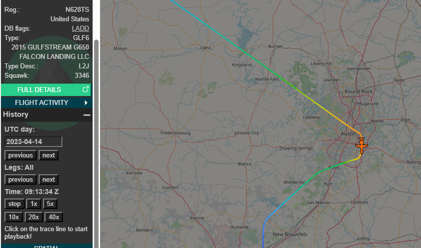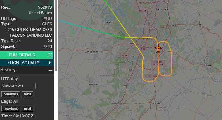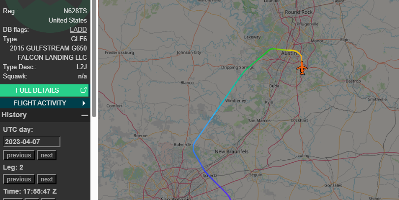 7:13 PM (ET) – Elon’s Jet departs Austin, TX ✈️