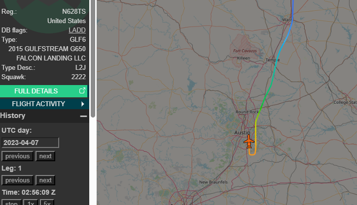 10:56 PM (ET) Elon’s Jet arrives Austin, TX ✈️