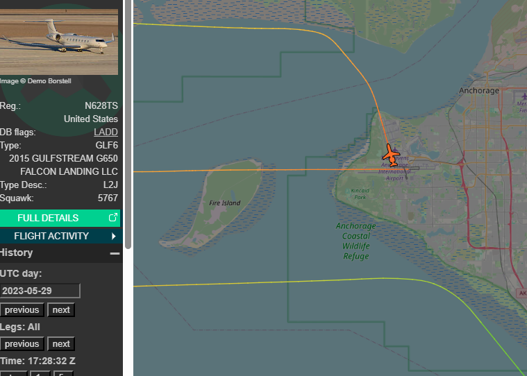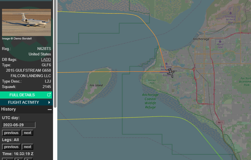 11:33 AM (ET) – Elon’s Jet arrives Anchorage, AK ✈️ (re-fueling)
