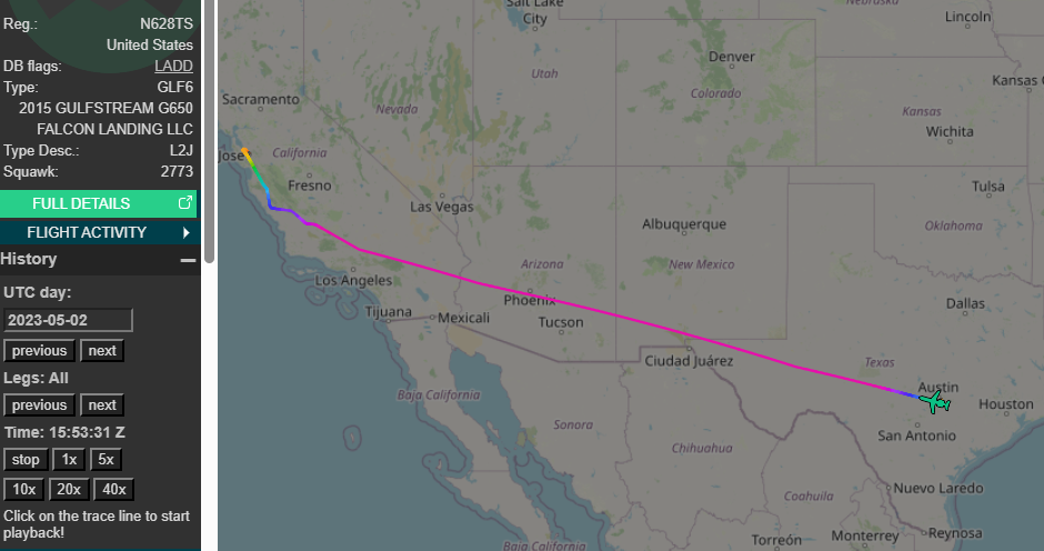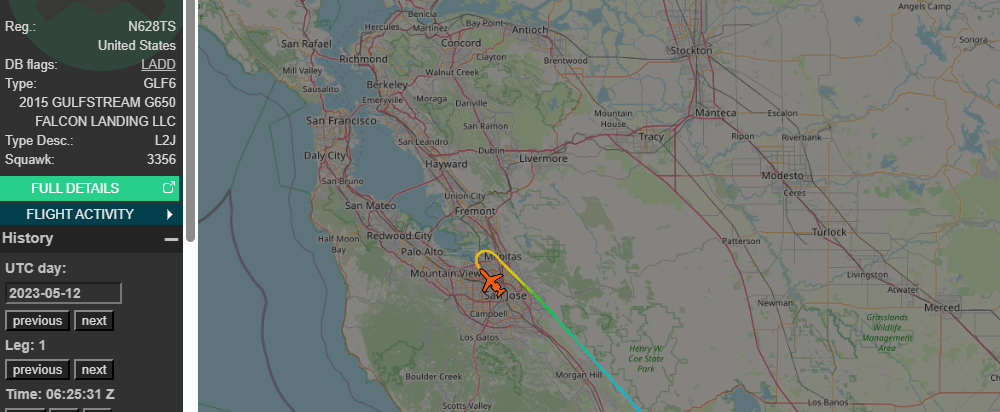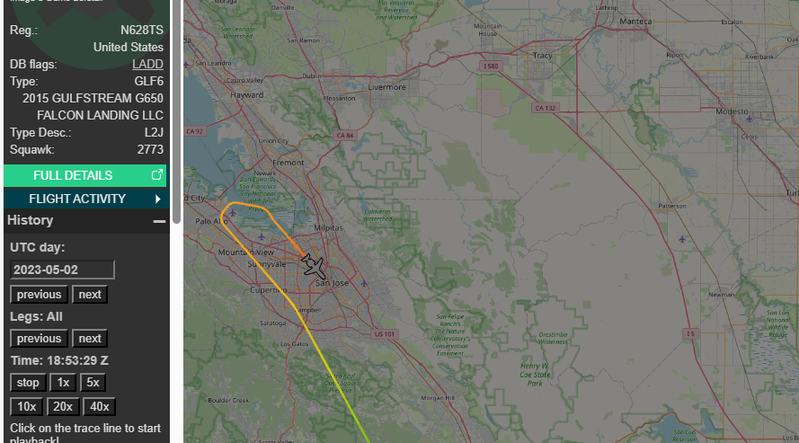 12:40 PM (ET) – Elon’s Jet arrives San Jose, CA ✈️