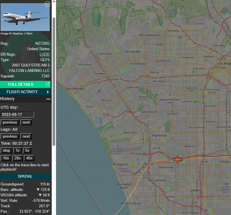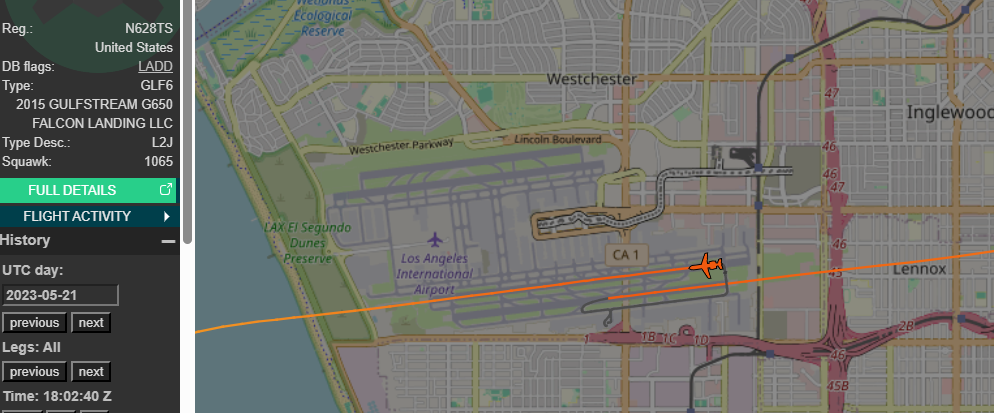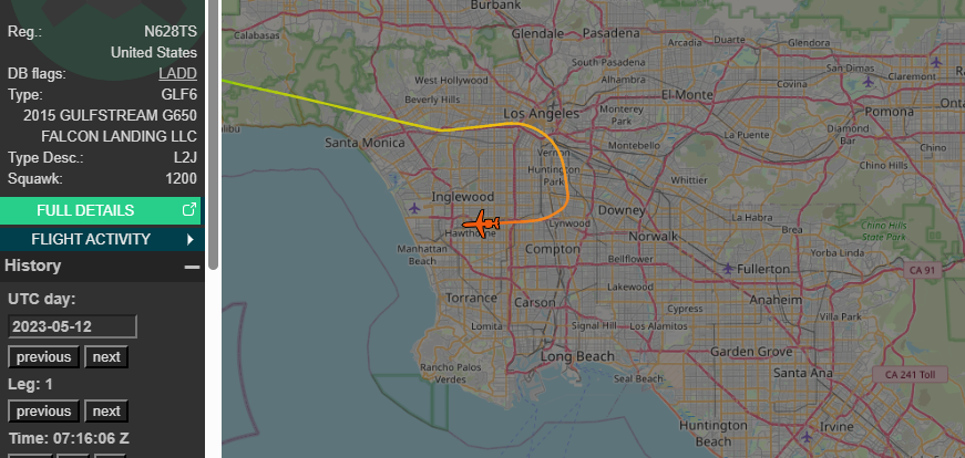 7:27 PM (ET) – SpaceX Jet arrives Hawthorne, CA ✈️