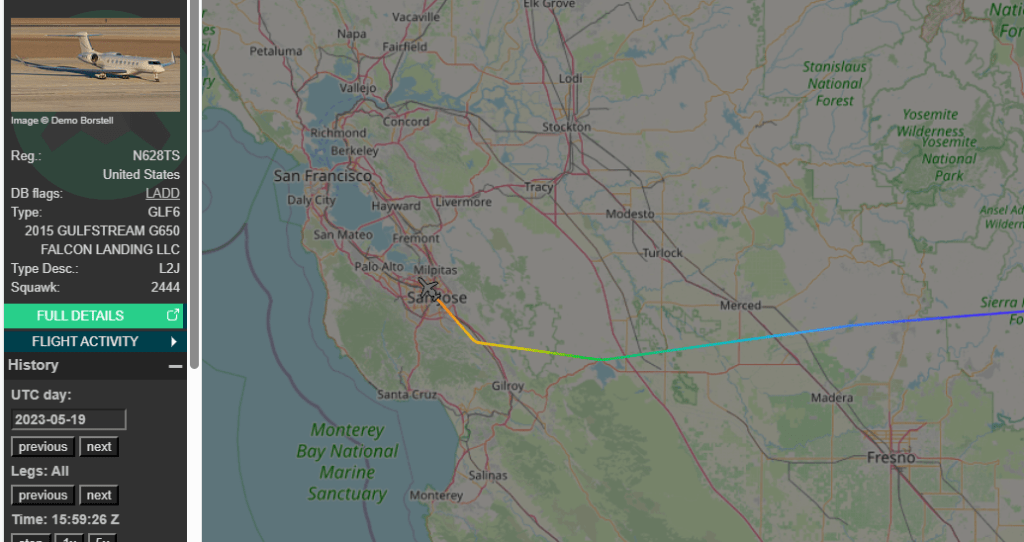 8:55 pm (ET) – Elon’s Jet arrives San Jose, CA ✈️