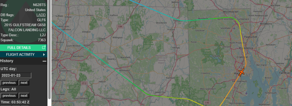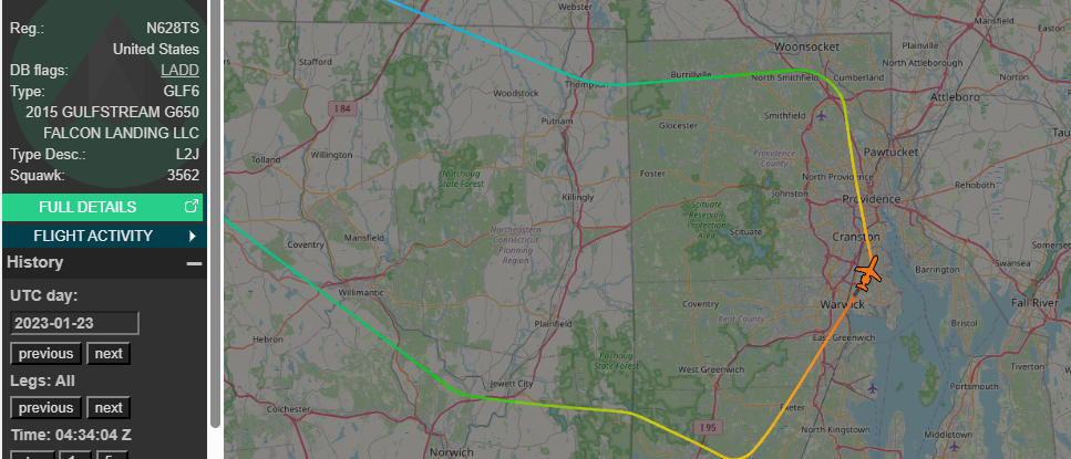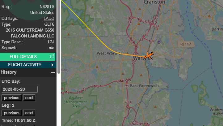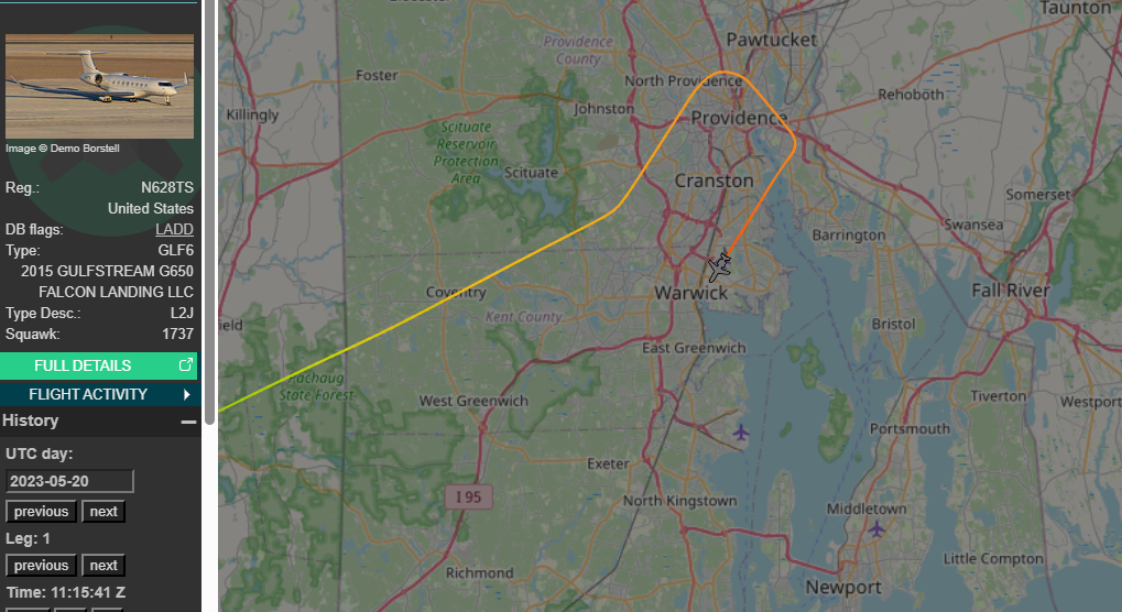 6:15 AM (ET) – Elon’s Jet arrives Warwick, RI ✈️