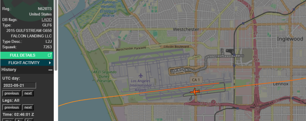9:46 PM (ET) – Elon’s Jet arrives LAX ✈️