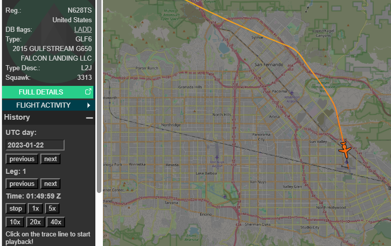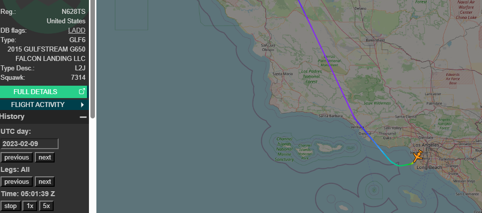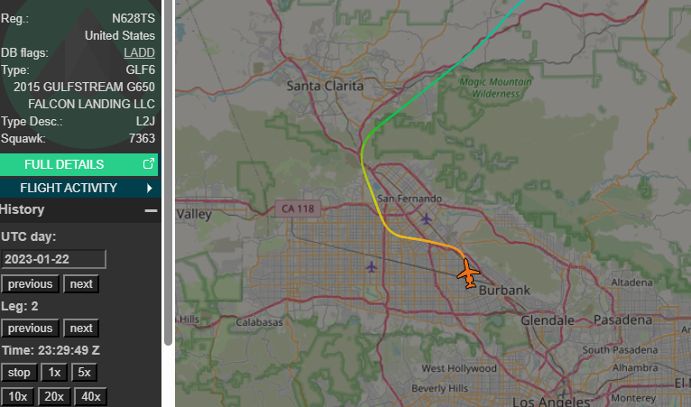 7:49 PM (ET) – Elon’s Jet arrives Burbank, CA ✈️