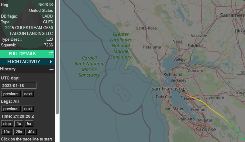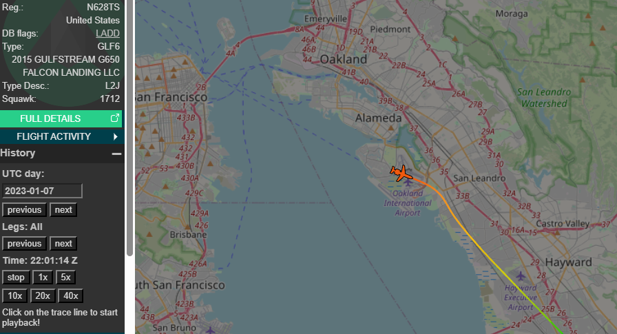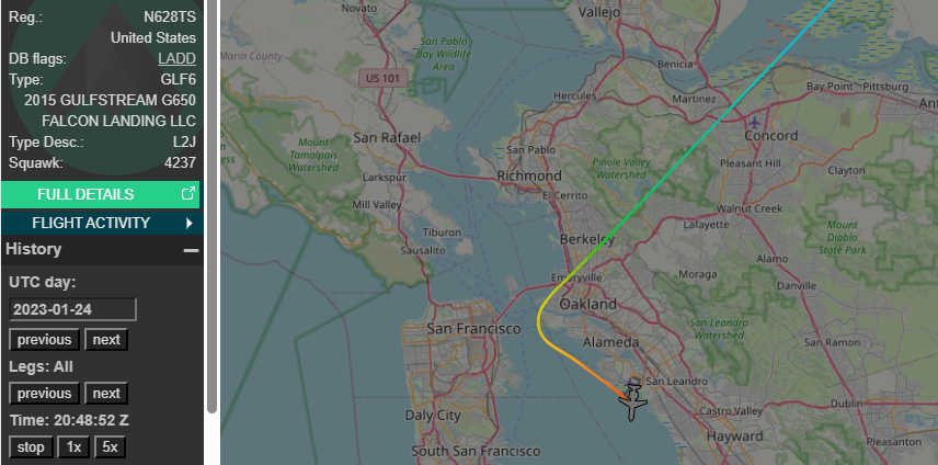 5:20 PM (ET) – Elon’s Jet arrives Oakland, CA✈️
