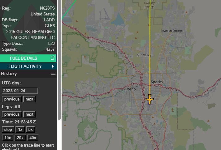 5:23 PM (ET) – Elon’s Jet arrives Reno, NV ✈️