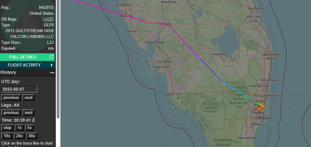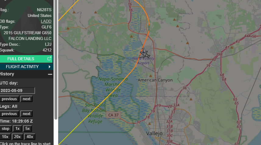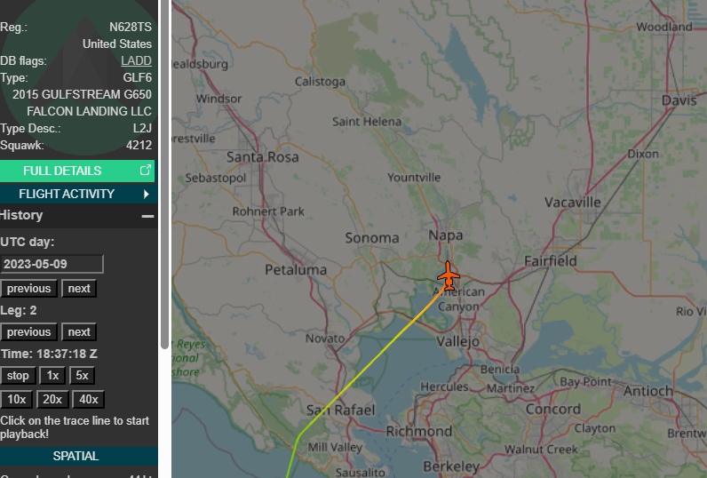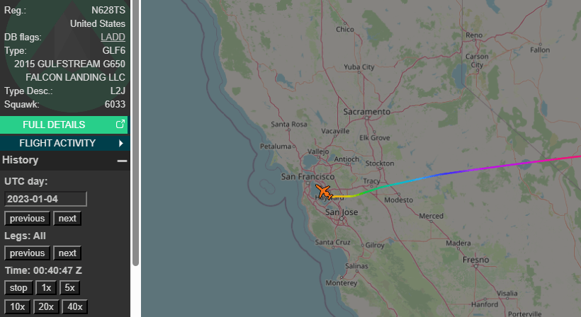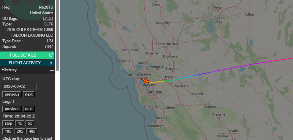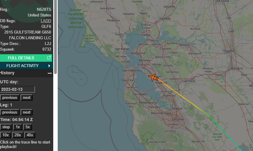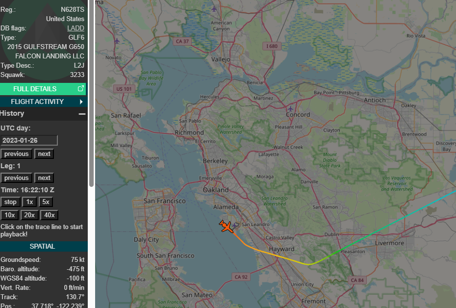 8:40 PM (ET) – Elon’s Jet arrives Oakland, CA ✈️