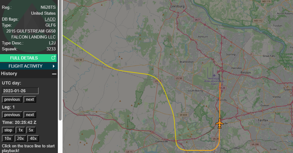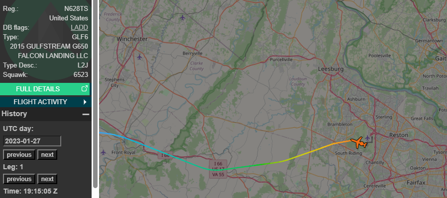 3:27 PM (ET) – Elon’s Jet arrives Dulles, VA ✈️