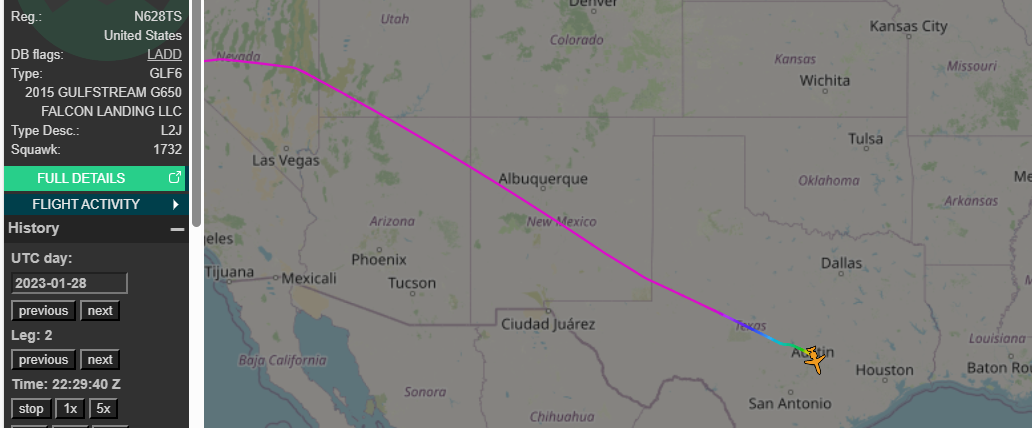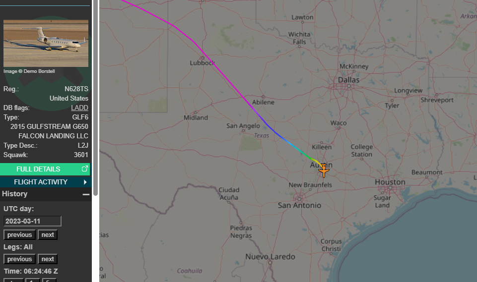 6:29 PM (ET) – Elon’s Jet arrives Austin, TX ✈️
