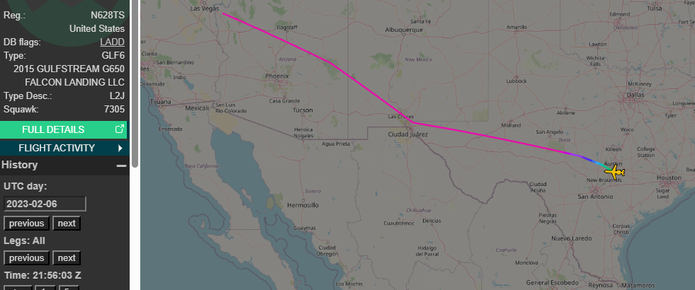 5:56 PM (ET) Elon’s Jet departs Austin, TX ✈️