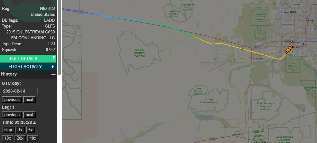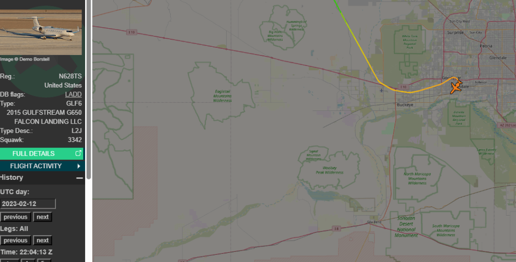 6:04 PM (ET) Elon’s Jet arrives Goodyear, AZ