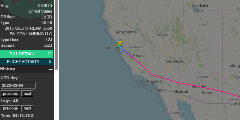 6:19 PM (ET) – Elon’s Jet arrives Oakland, CA ✈️