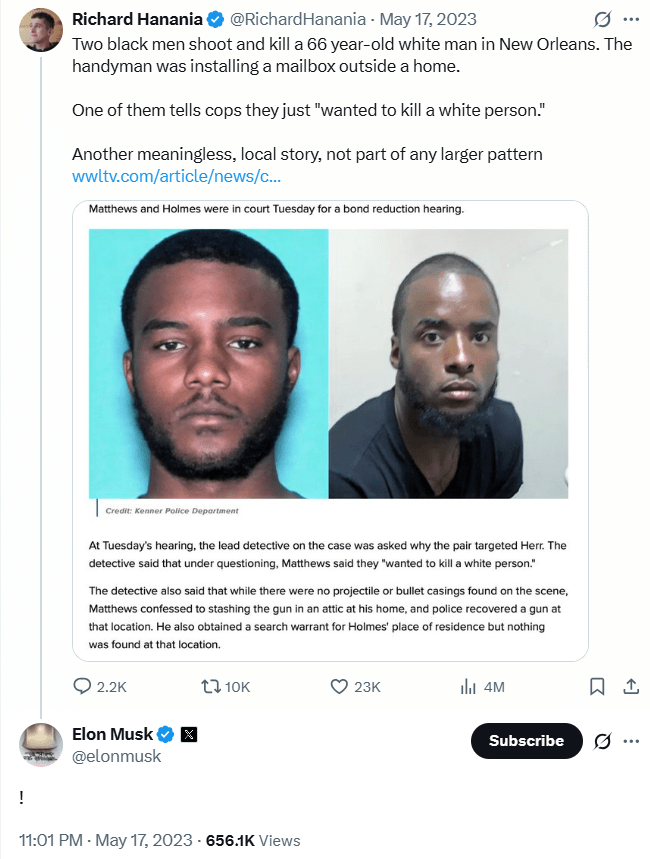 11:01 PM – Musk’s got himself on the “Black Crime” beat