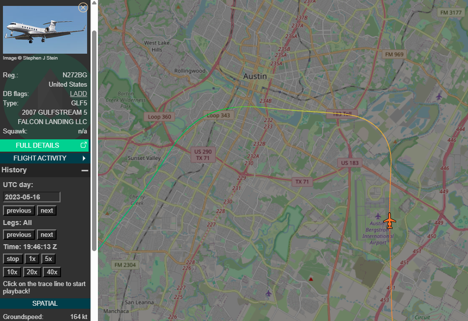 Elon Jet: Detroit, MI –> Austin, TX (3:19 PM ET)