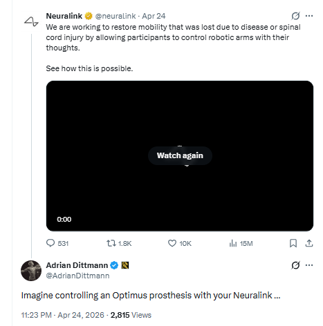 1(8:00 PM – 10:18 PM) – Adrian Hosts Space with Neuralink Recipient